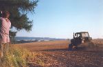 Budící traktor ráno za Jihlavou