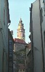 Zámecká věž z uličky od náměstí