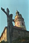 Zámecká věž a kříž na mostě