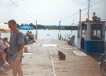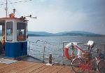 Na prámu do Dolních Vltavic, vzdalující se břeh