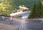 Vzůru výpustí hráze Dalešickej přehrady