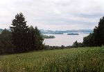 Za Bližší Lhotou pohled na Lipno, v dálce hafo surfů