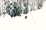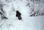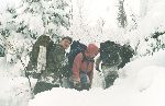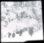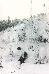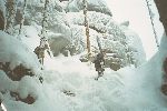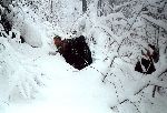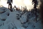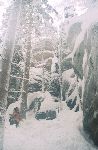 Skály a sníh z hledání převisu - zapadlej Pepr a Papi