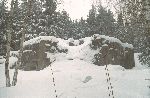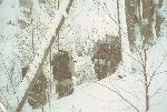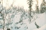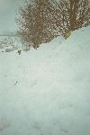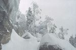 Skály a sníh z hledání převisu