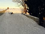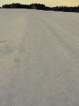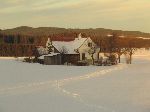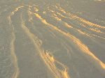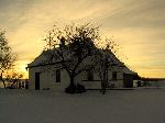 Sněhové duny na poli v zapadajícím slunku
