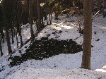 Odtěžená část valu odkryla řez drážním tělěsem. V lese v oblouku za Schoberem