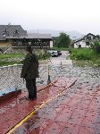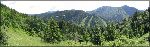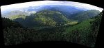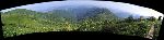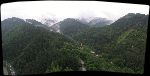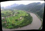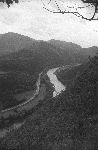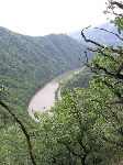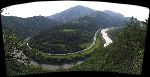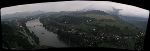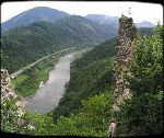 Jihovýchodní výhled na údolí Váhu, po kterém jedou vodáci