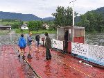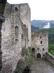 Hrad Strečno pnoucí se nad Váhem z lávky přes Váh
