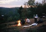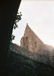 Výhled ze spacáku na kostel