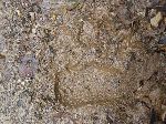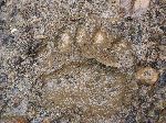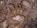 Medvědí stopa v blátivé cestě na JV svahu Hrádku