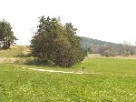 Zarostlý a částečně zaoraný zářez kolejky u Hamrů