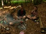 Marin (ten červenej) jdoucí pro dřevo