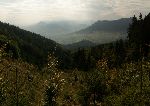 Ve stoupání na Predný choč - jižní výhled na Likavský hrádek, Čebraťský masiv a předhůří Nízkých Tater