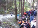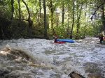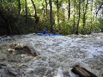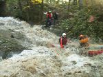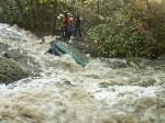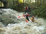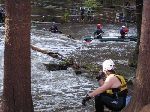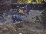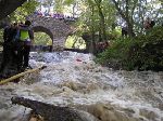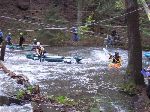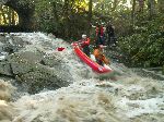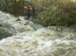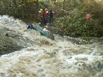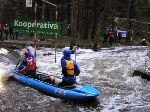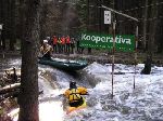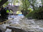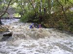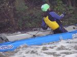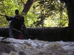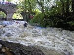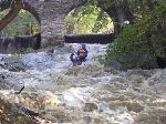 Žach s Tokajítem jedou kaskádu pod kamenným mostem