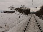 "Odbočka" současné vlečky. Původní trať na Plzeň pokračovala rovně