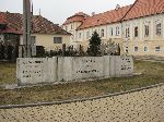 Druhá strana hraničního kamennýho patníku s iniciály HT
