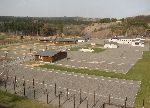 Areál koncentračního tábora VOJNA s několika rekonstrukcema ubikací. Zbývající ubikace, jejich základy jsou vyznačeny jen ve štěrku.