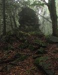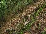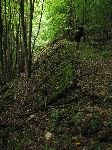 Zbytky kamenných valů a ďury po partyzánském bunkru