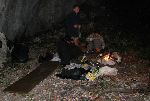 Zbytky kamenných valů a ďury po partyzánském bunkru. Naznali jsme, že se doopravdy nejednalo jen o "ubytovací" zemljanku, ale o pevnůstku. V kamenném valu pak mohly být střílny ostřelující níže probíhající cestu.