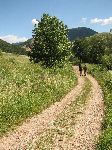 Po náspu nedostavěné trati k Tisovci s dominantou kopce Hradová