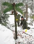 Tak, věci na kontrole s Přírodopisem jsou vyložený, namontováný, stouny namalovaný a šifry poschovávaný. Ten smrček jsme sprostě nepřeťali. Na podzim vyhlídnutá původní souška o padesát metrů vedle tu nějak nebyla... Tudíž jsme využili zlomenýho kmínku smrčku, který jsme mačetou doupravili pro palmu.