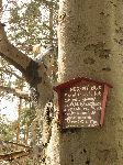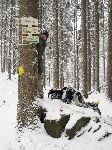 Montáž hlavního rozcestníku. Jak jsem při kradení rozcestníků zjistil KČT to tam do stromů mlátí přímo hřebama. Ale mlátit hřebíky do stromu se mi nechtělo, tož jsem splašil hliníkové pásky, které se používají k upínání na el. sloupy. Bohužel ty pásky jsou moc vidět a není to ono. No, mohl jsem je natřít na hnědo, ale teď je už pozdě. Tak snad se to bude líbit i s těma páskama.
