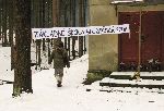 Uvítací transparent pro příchozí bludiče...