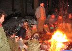 Za kapličkou Na Mýtě se dopoledne žhaví oheň a připravuje vše potřebné...