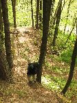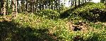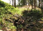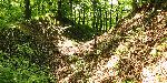 Val a příkop hrádku Burkvíz. Vpravo kopec Strážiště, kde je na starších mapách mylně hrádek zakreslen.