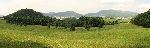Vlevo kopec Hradisko s Rožnovským hrádkem, vpravo Lysá hora