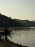 Rybáři brzo ráno na Bystřičce, kde jsem spal