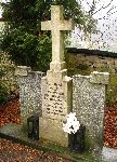 Hrob 18cti neznámých obětí transportu smrti z Osvětimi, kteří byli vyhozeni mrtví z vlaku 24. ledna 1945. Na pravé desce jsou zapsány jejich vytetovaná čísla.