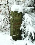 Potkaný hraniční mezník s písmeny IWFVL, rokem 1767 a číslem 446