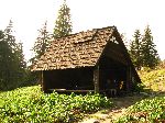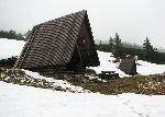 Přístřech u pramene. Na mapě sice vyznačen není a zbytky sněhu zafoukaného do polovičky boudy ...no ten náš přístřech byl lepší.