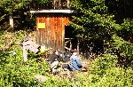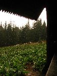 Krátká pauza v přístřechu na hranici chákáóčka nám ušetřila mokrou noc. Teď ještě svítí sluníčko, ale za pět minut přijde slejvák, k večeru bouřka a k ránu sněžení.
