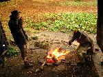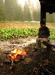 Jsme rádi, že teď nejsme někde v otevřeném terénu. Hromy se ozývaj ze všech stran a my si tu užíváme tepla ohýnku.