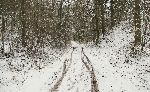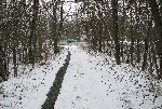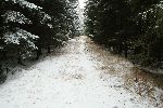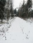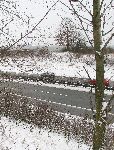 Za silnicí už se val kolejky pro zkrácení lesní či silniční cesty nehodil, tudíž mezi silnicí ke Kařízku kolem rybníku Němec je val železniční přípojky zachován. Na fotce na levé straně vede od křižovatky současná silnice k nádraží.