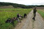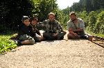 Spát jsme šli do lesa za Konicema, kde se objevila střelnice, takže jsme aspoň nemuseli napínat plachtu. V sobotu po desáté nás tu našli Skřítek, Adam a Fara.