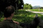 Na ztichlém Křimovském nádraží. Aspoň na chvíli sundáme promáchaný bagančata, dáme něco dlabance a vyrazíme do nedaleké Celné, kde má jet bus do Chomutova.