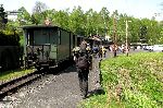 Přepřahání lokomotivy ve Steinbachu, kde končí obnovený kus tratě