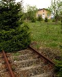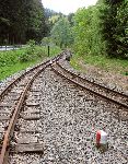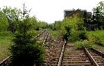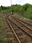 Končící koleje nedaleko před současným silničním přechodem