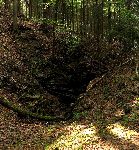 A hned ve svahu nad zastávkou Stolln jsme potkali další zbytky po místním štolování. Vlízt se, ale nikam nedalo.