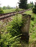Kousek za současným silničním přechodem se těleso tratě opět objevuje i se strážním domkem
