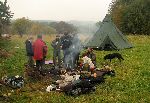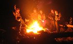 Večer u ohně u srubu na kopci Šibeník