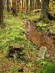Osamělý mezník u potůčku Pstruhovec