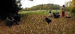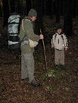 Pauza na rozcestí "Plachý šraňk", kde stávala závora na hranici mezi soukromými a panskými pozemky ...takže opět jdeme po hranici.