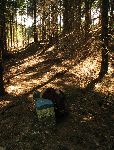 Úsek s několika mezníky, kde se hranice stáčí. Hraniční strouha je tu skoro neznatelná. Obecně se hraniční strouha místy ztrácí, místy naopak rozbočuje a je těžké říci, co je hraniční strouha nebo staré při těžbě vyježděné rygóly po traktoru či jinak poničený terén. Někde je komplikovaný srovnávat terén s historickou mapou a vůbec se orientovat v historické mapě. Ale zatím se nám víceméně daří tu hranici Čechy - Morava kopírovat.