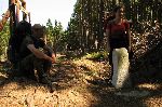 Narovnávání dalšího mezníku na hřebínku vršku Šibeník