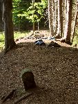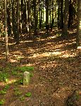 Občas se vyskytují jen přírodní kameny s vytesaným křížkem. Zde je hraniční strouha vedoucí k osadě Nový Svět znatelná.