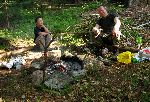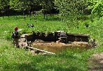 Mates s Farou pod protrženou hrází budují přehradu s umejvadlem